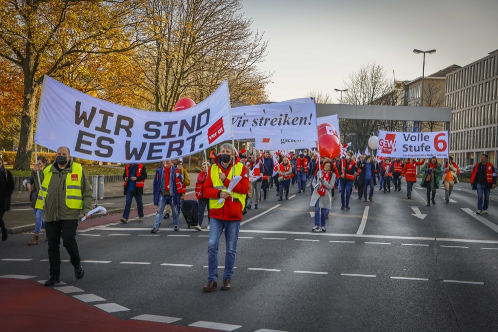 Nicht nur die GEW, auch die Dienstleistungsgewerkschaft ver.di hat in der Tarifrunde im öffentlichen Dienst der Länder die Beschäftigten der Dortmunder Landesbehörden und -betriebe zu ganztägigen Streiks und einer Demonstration aufgerufen. Bereits direkt nach der ergebnislosen zweiten Verhandlungsrunde Anfang November hat der Vorsitzende der Vereinten Dienstleistungsgewerkschaft (ver.di), Frank Werneke, eine spürbare Ausweitung der Streiks angekündigt.