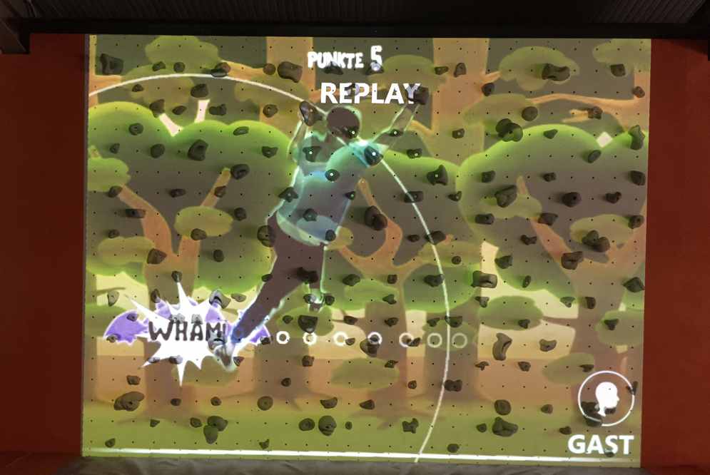 Möglich wird das durch den Einsatz moderner Technik: Ein Beamer projiziert die Spielfläche direkt an die Kletterwand, während eine Kamera die Bewegungen des Körpers erfasst und das Spiel so direkt berechnet. Die Kamera zeichnet zudem jedes Spiel auf, sodass man sich im Anschluss das Video per E-Mail selbst schicken und immer wieder anschauen kann.