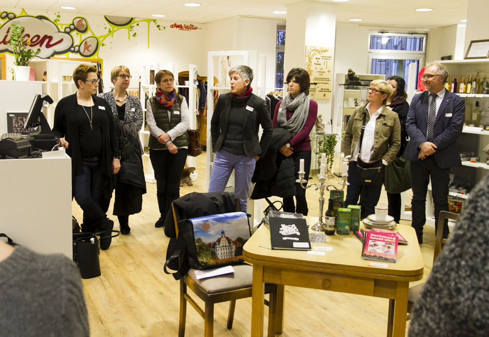 Wie Unternehmerinnen die Nordstadt bewegen, war Thema eines Spaziergangs im Rahmen der Unternehmenstage 2015, veranstaltet vom Kompetenzzentrum Frau und Beruf. Als Gründerin der BorsigplatzVerführungen übernahm Annette Kritzler passenderweise nicht nur die Moderation des Rundgangs.