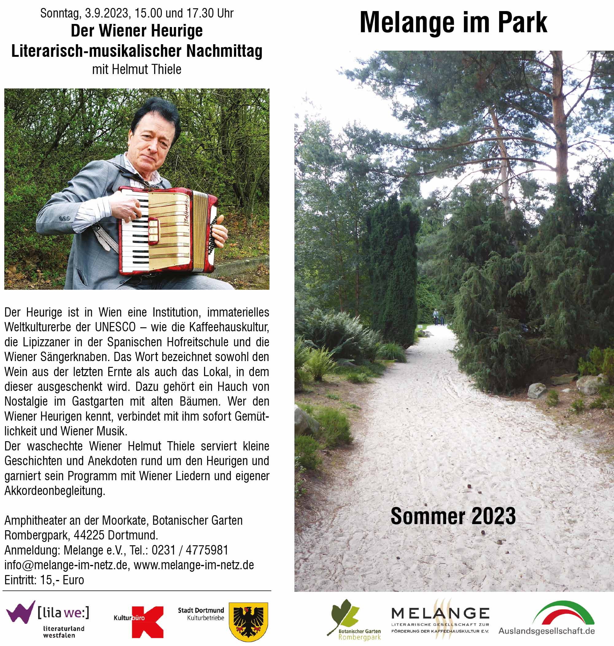Am Ende der Saison (3.September) steht ein Nachmittag am ganz im Zeichen des Wiener Heurigen, wenn der österreichische Schauspieler Helmut Thiele Geschichten und Lieder zum Thema präsentiert.