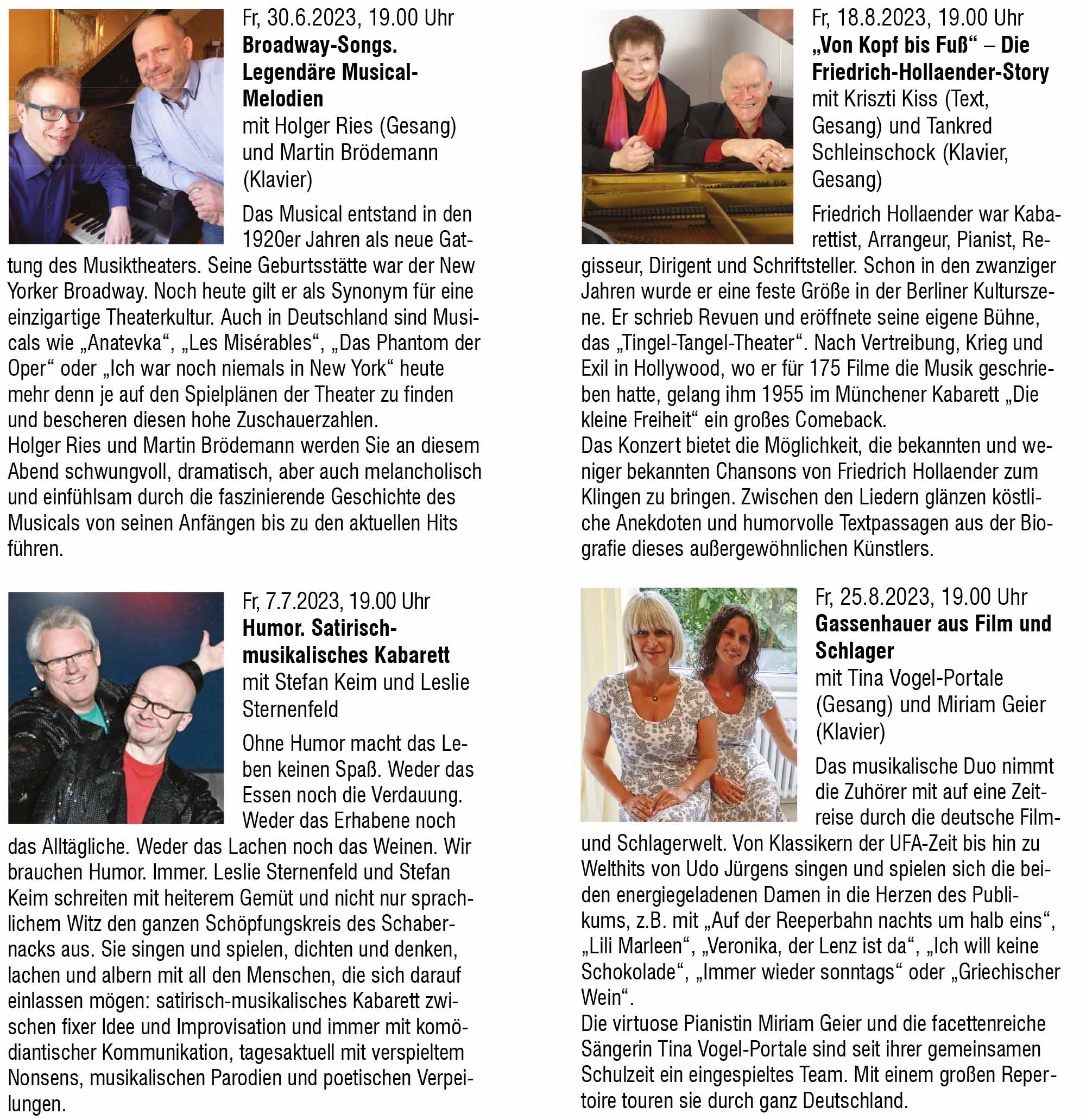 Die Terrassenkonzerte macht der Melange e.V. in der vierten Auflage. „Wir haben damit in der Corona-Zeit 2020 begonnen, als es noch kaum Alternativen für Veranstaltungen gab. Jetzt haben wir die Reihe etabliert und hoffen ab 30. Juni auf eine erfolgreiche Spielzeit mit Musicals, Schlager und Chansons“, berichtet Melange-Geschäftsführer Dr. Thomas Eicher.