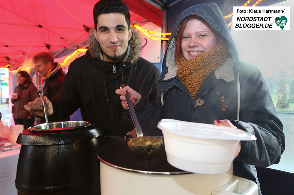 Der Glühwein ging weg wie warme Semmeln, die Erbsensuppe schmeckte dazu oder als Vorspeise. Das Wetter zum Winterfest rund um den Borsigplatz passte in die Jahreszeit. Sonnig, kalt und windig.