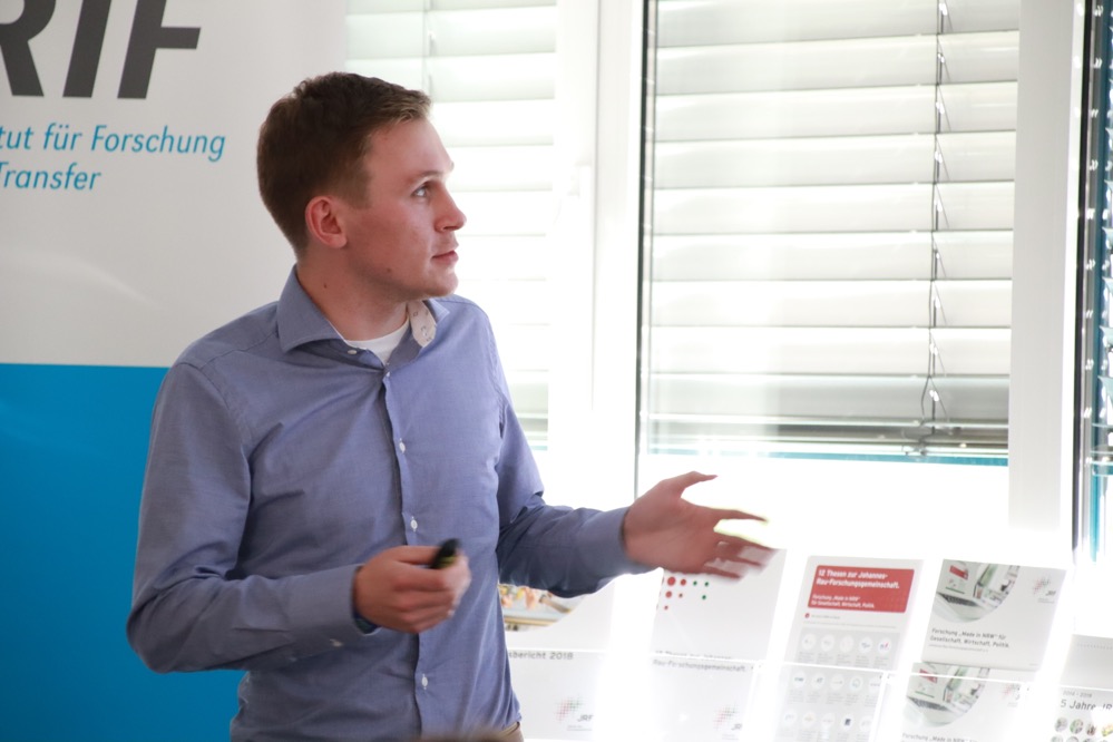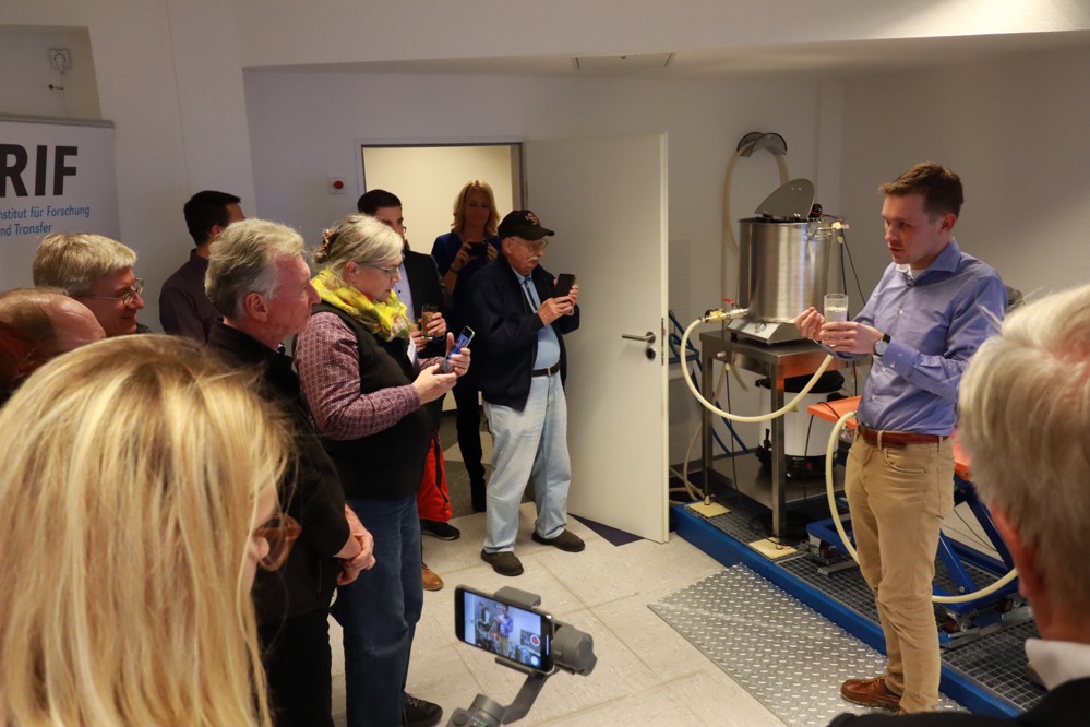 Wie passen Bier und Informatik zusammen? Das konnten die TeilnehmerInnen der Tour zum RIF Institut für Forschung und Transfer erfahren. Die ForscherInnen dort forschen daran, wie der Prozess des Brauens mit modernen Computertechniken verbessert werden kann. Dabei arbeiten sie auch mit den großen Brauereien Bitburger und Augustiner zusammen, um in der Praxis forschen zu können. Das passt auch zur Zielsetzung des Instituts. „Wir betreiben keine Grundlagenforschung wie die Unis es tun“, erklärt RIF Geschäftsführerin Dr. Svenja Rebsch. In ihrem Institut gehe es um den Transfer zum realen Einsatz der Forschung.