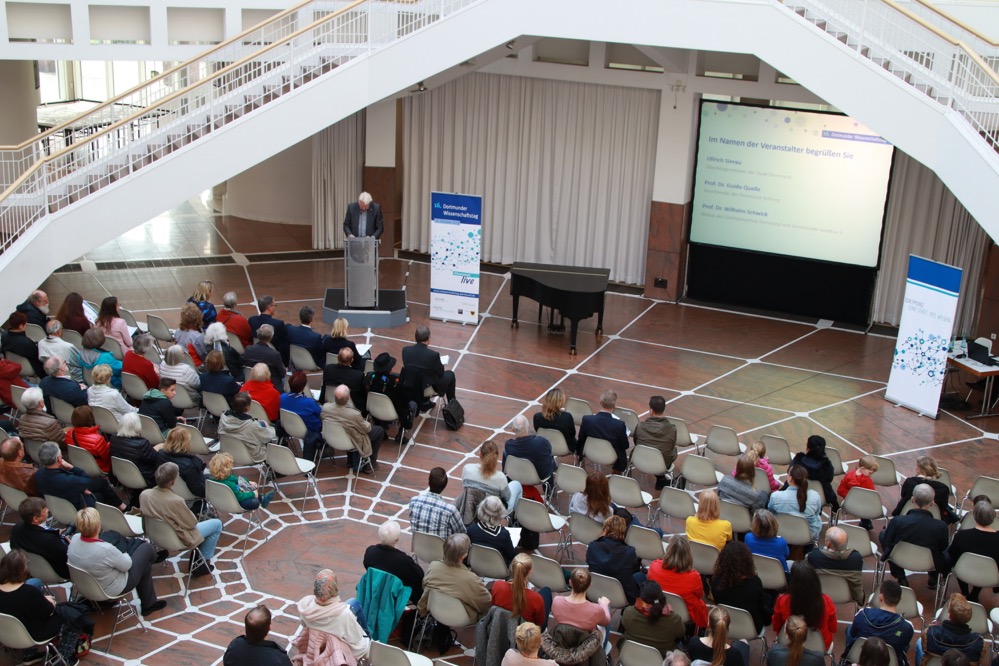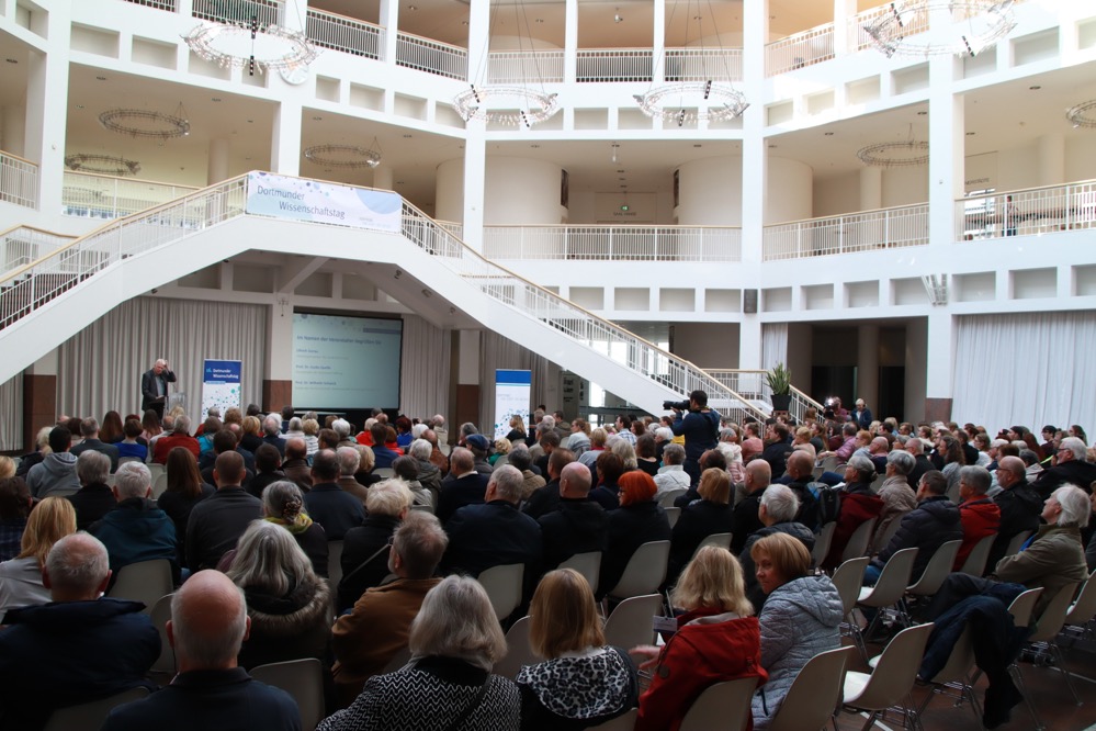 Junge und alte Menschen sind am Donnerstag Nachmittag ins Rathaus gekommen. Sie alle eint ein Interesse, die Wissenschaft. Schon zum sechzehnten Mal haben der windo e. V., die Stadt Dortmund und die Dortmund-Stiftung interessierte Bürgerinnen eingeladen, hinter die Kulissen der Forschung zu schauen.