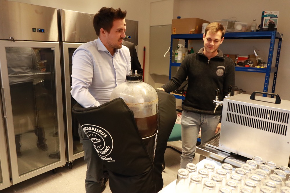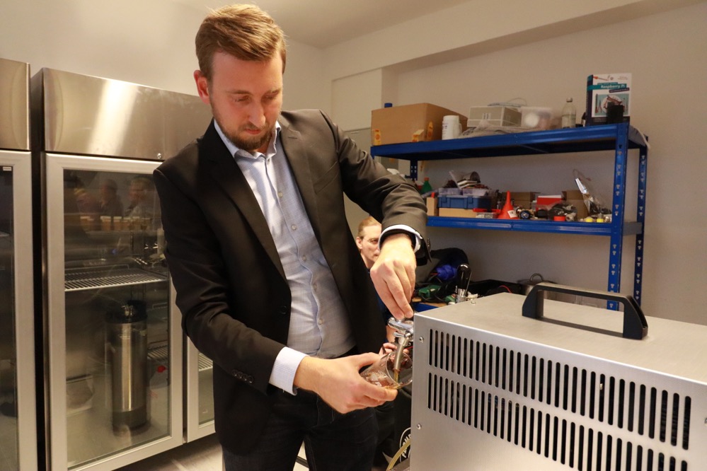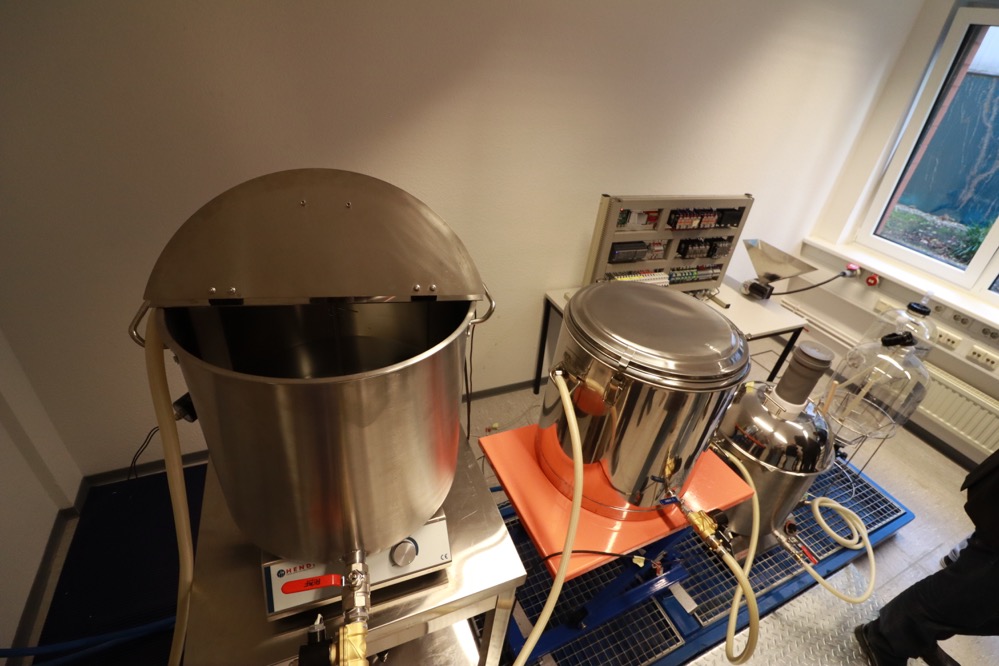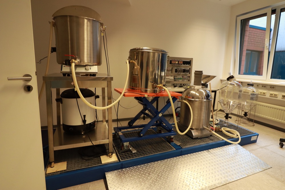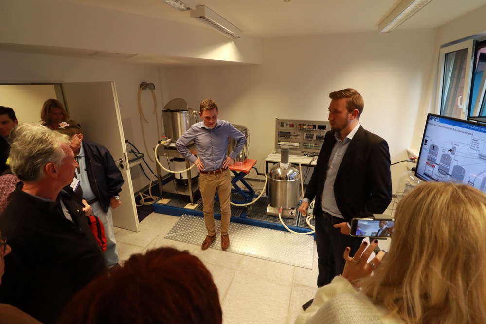 Seit Forschungsbeginn haben die ForscherInnen die benötigte Infrastruktur aufgebaut, um mit den Daten arbeiten zu können. Als nächster Schritt geht es nun an die Auswertung der Daten. Getestet wird das System in den beteiligten Brauereien, aber auch in Dortmund. Und das konnten sich die TeilnehmerInnen exklusiv anschauen. In die Laborbrauerei im Technologiepark kommen sonst nur Forschungsbeteiligte hinein. Hier sind alle für den Brauprozess benötigten Anlagen in klein aufgebaut. Zum Abschluss durften die TeilnehmerInnen der Tour das Laborbier auch noch probieren.