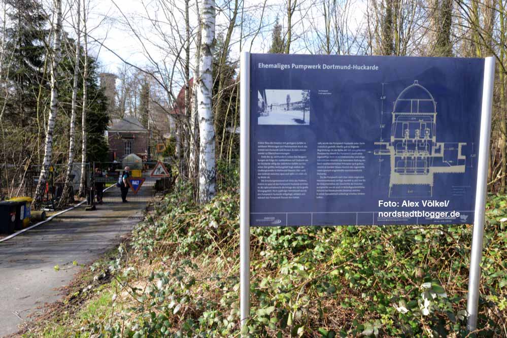 Das Pumpwerk Huckarde gehörte zur ersten Serie solcher Anlagen. 1926 gebaut, gestaltete man den Zweckbau optisch ansprechend. Ziegel- und Putzflächen beleben die Fassade; die hohe Dachhaube setzt einen besonderen Akzent.