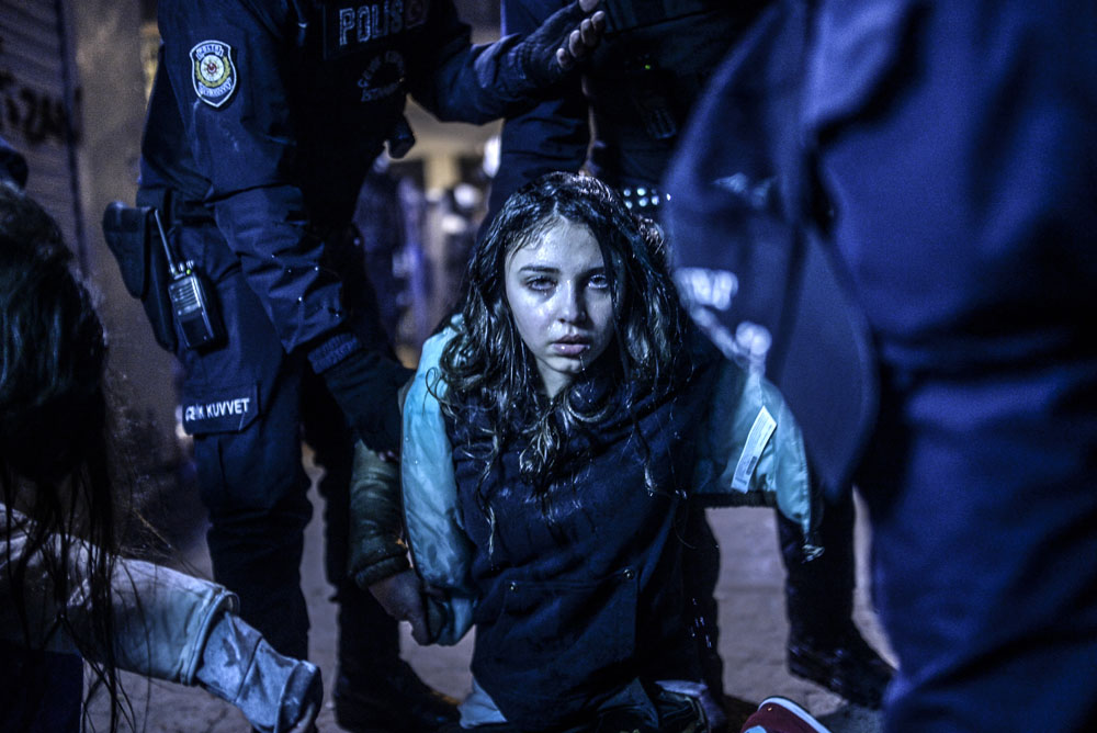 Girl wounded during clashes between riot police and protestors, Istanbul, 12 March