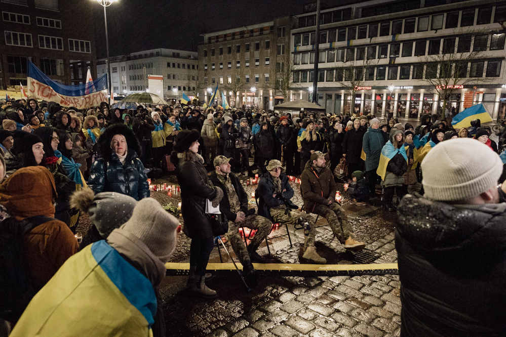 „Die Ukraine kämpft für ihre Integrität und für universelle Menschenrechte. Demokratie und Freiheit werden sich gegen Diktatur, Unterdrückung und Propaganda durchsetzen – Und das Licht besiegt die Dunkelheit“, hieß es im Aufruf zur Kundgebung. Trotz des miserablen Wetters waren viele Menschen gekommen. Eine Hoffnung war den meisten gemein: Die Hoffnung, dass es es keinen zweiten Jahrestag des Kriegsbeginns geben wird – und die Ukraine ihre territoriale Integrität zurückbekommt.