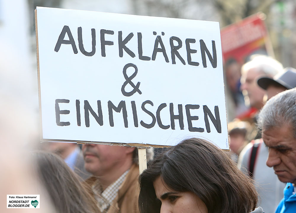 „Auch heute kann man polizeilichen Rassismus nahezu an jedem Tag in der Nordstadt erleben“, so der junge Mann und fordert als Konsequenz unter Applaus, sich nicht blind auf die Behörden zu verlassen.
