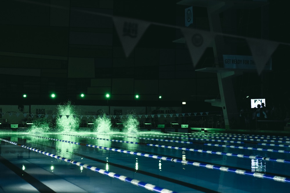 Zum zweiten Mal fanden die Swim Race Days im Südbad statt. Foto: Jan WeckelmannDas Elimination-Race sollte am Samstagabend den Schwimmsport publikumstauglich werden lassen und tatsächlich durften die acht schnellsten Schwimmerinnen und Schwimmer der 200 Meter Lagen vor gefüllter Tribüne antreten.