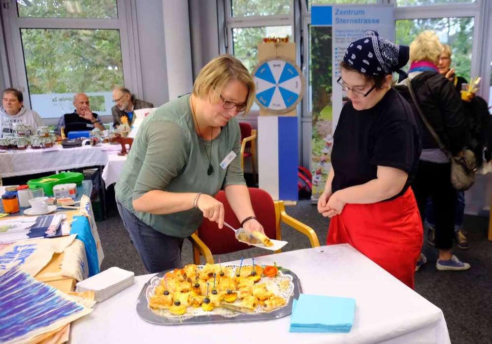 Zeitgleich präsentierten die restlichen Arbeitsgebiete der Diakonie ihre Inhalte auf dem „Markt der Diakonie“ im zweiten Obergeschoss des Hauses. Dieser hätte ursprünglich in Pavillonzelten neben dem ZBS-Fest stattfinden sollen, wurde aber aufgrund des Windes kurzfristig ins Innere verlegt.