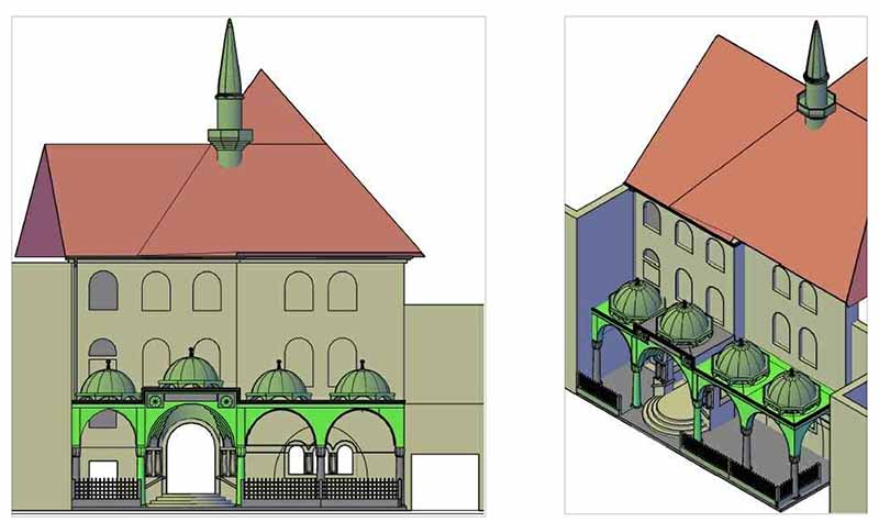 Der alte Vorbau soll abgerissen und durch vier kleine ovale Kuppeln entlang der Kielstraße ersetzt werden. Außerdem soll der Schornstein umgestaltet werden, damit er wie ein Minarett aussieht.