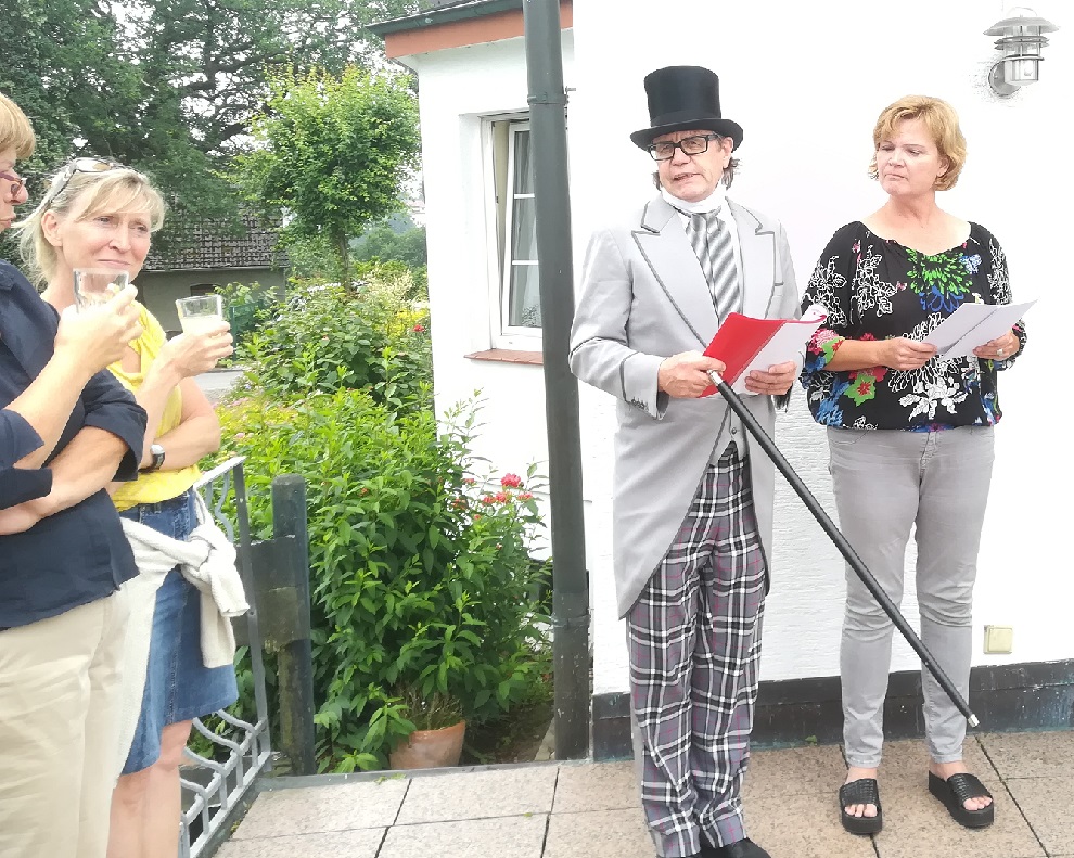 Doc Little DaDa trug den Galerie-Reise-Gästen auch die dadaistische Sicht auf die politische Situation in der Bundesrepublik vor, in seiner DADA-Satire: „Schxxxx, erweckt sofort ungewollt negative, braune Assoziationen aus der Vergangenheit, aber After braucht jeder. Und prägnant abgekürzt macht man als Neu-Politker Aft.“