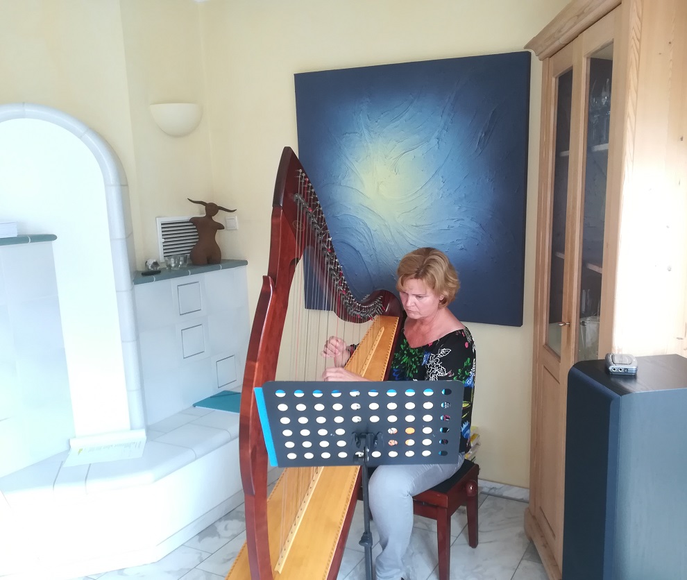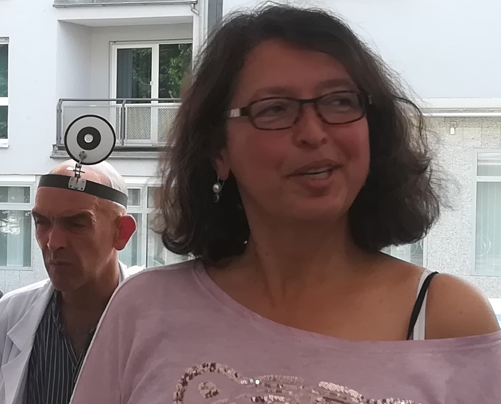 Die nächste Station war bei Christiane Köhne, bekannt durch ihre Schach-Figur-Fotographien, welche für die TourteilnehmerInnen nach einer dadaistischen Erotik-Poesie ein musikalisches Ratespiel, verbunden mit ihrem Harfenspiel, anbot.