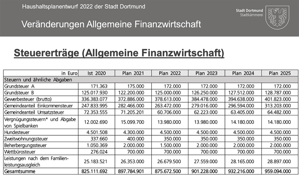 Die Haushaltsplanung für 2022 kommt dabei ohne nennenswerte additionale Bürden für Dortmunder Bürger*innen und örtliche Unternehmen aus: die Hebesätze für die Gewerbesteuer bleiben ebenso wie die Grundsteuer unverändert; weitgehend stabil gehalten werden konnten die fälligen Entgelte für städtische Leistungen.