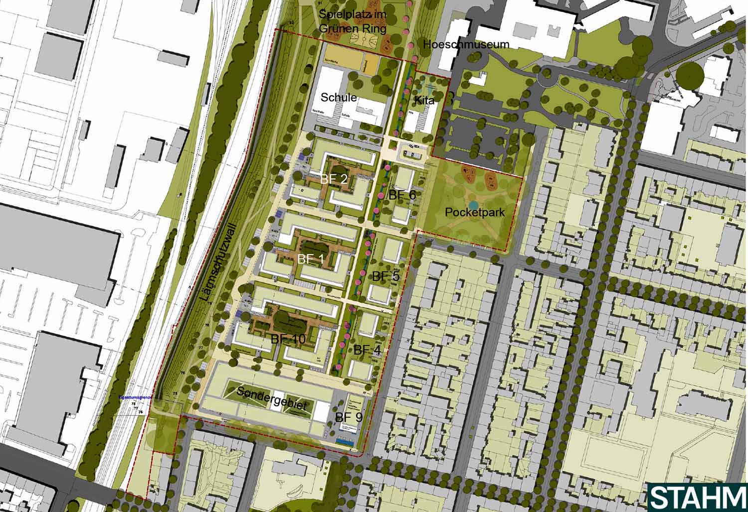 Der Bau des Wohnquartiers werde von den beiden Vorhabenträgern schon 2023 begonnen. Bis 2028 soll der letzte Abschnitt fertig sein. 800 Wohneinheiten plus Nahversorger plus kleinteiliger Einzelhandel sollen entstehen.