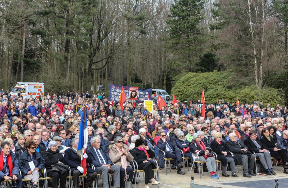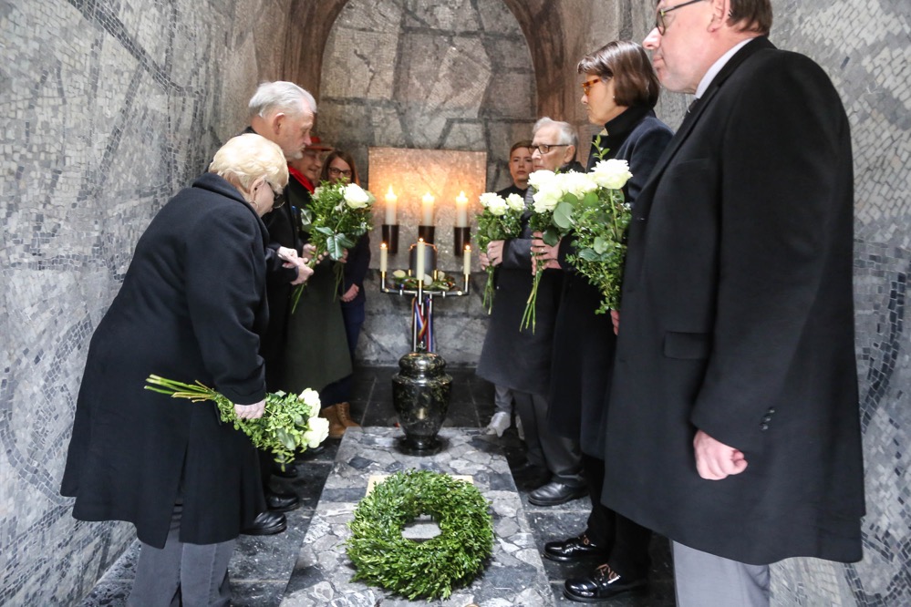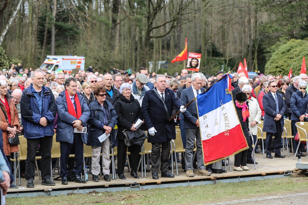 Eine ganz besondere Rolle kam während der knapp anderthalbstündigen Zeremonie der Krypta zu, die sich eingefasst am hinteren Ende des Mahnmals befindet. Feierlich eingeweiht zu einem Zeitpunkt, als die Stätte noch nicht fertiggestellt war, am Karfreitag 1958, wurde in ihr eine Urne mit französischer Erde vom ehrwürdigen Pariser Friedhof Père Lachaise hinterlegt und bis zum nächsten Jahr verschlossen.
