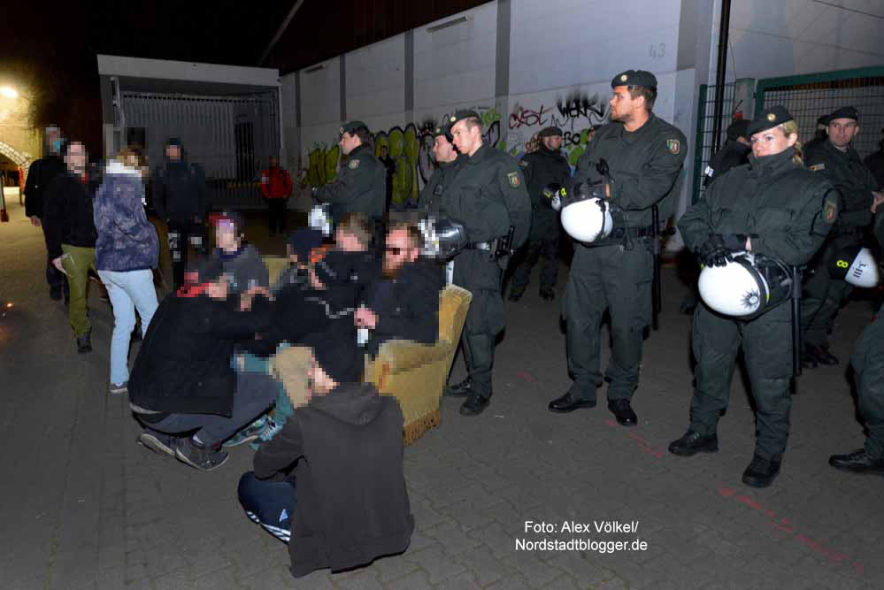 Auch als die Hausbesetzer abgeführt wurden, kam es lediglich zu Sprechchören. Als die Besetzer zum Polizeipräsidium gefahren wurden, machten sich etwa die Hälfte der Aktivisten dorthin auf den Weg, um eine Spontandemonstration gegen Polizeiwillkür zu machen. Diese wurde jedoch von der Polizeiführung untersagt.