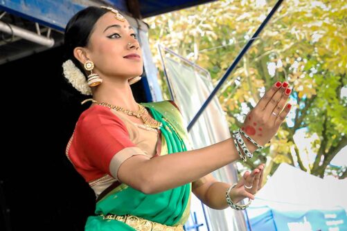 Unterschiedliche KünstlerInnen aus der ganzen Umgebung sind für diesen Tag ins Union-Viertel gekommen. Besonders die Tanzgruppen machten gute Stimmung beim Publikum. Einer der traditionellen Tänze war der Kavadi-Tanz.