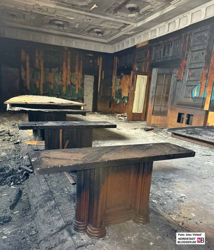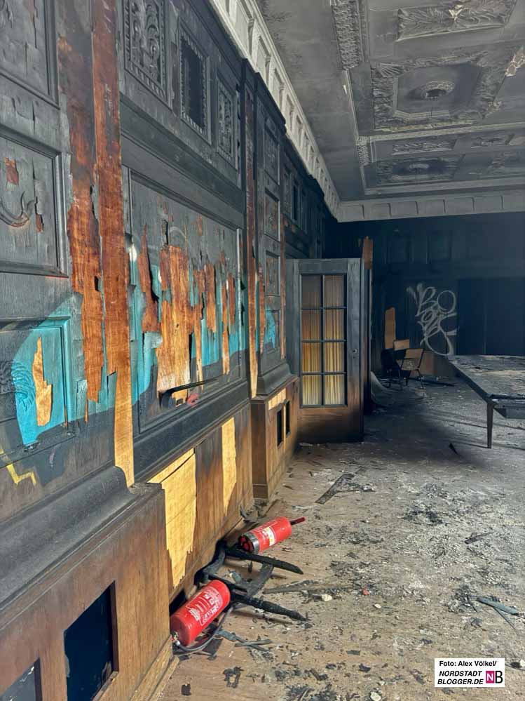 Der „historische Wert ist total zerstört“, sagt Nehm mit Blick auf den einst so prächtigen, jetzt verwüsteten Sitzungssaal.