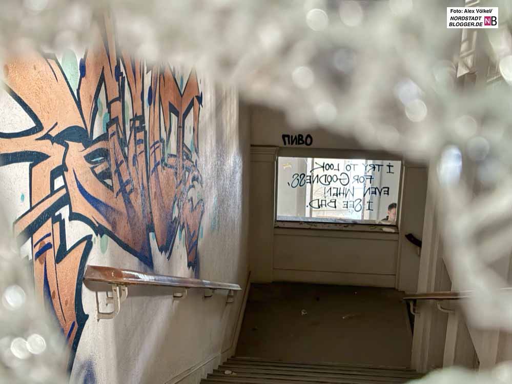 Die Verwahrlosung kommt einem auf jeder Etage entgegen