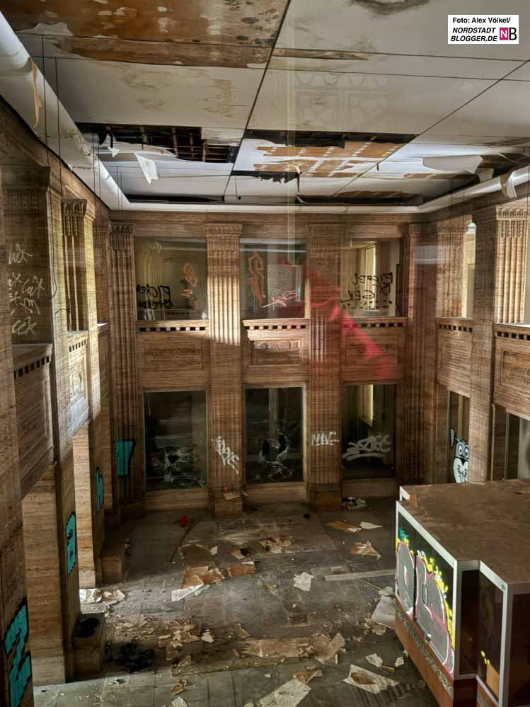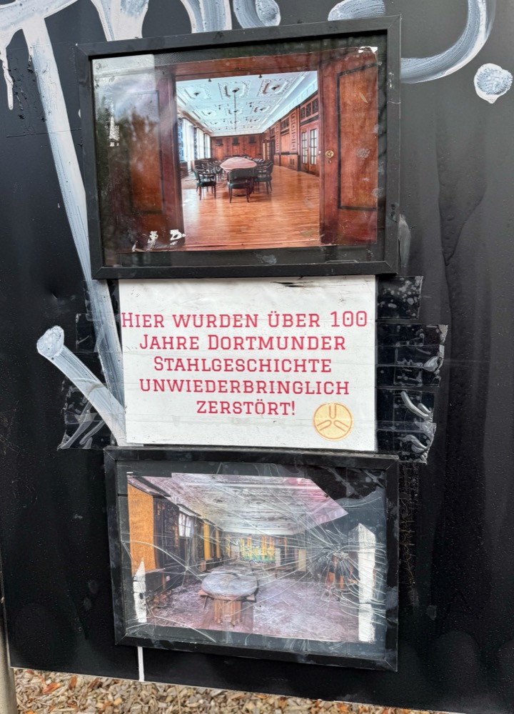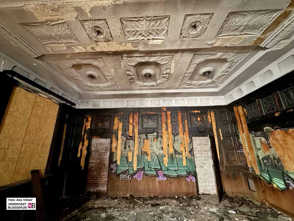 Grausam: EIne geradezu gruselige Serie von Versäumnissen. Wie konnte man zulassen, dass es so weit kommen konnte! Der Konferenzsaal von 1922 mit seiner gediegenen Ästhetik galt als einer der schönsten im ganzen Ruhrgebiet. Was die Kriegsbomben nicht geschafft haben, hat die Zerstörungswut einiger sehr spezieller Mitmenschen mit Äxten, Sprühdosen, und Feuerzeugen erledigt; letztlich ein pervertierter Kapitalismus, der, wie man sieht, zu nichts weiter geführt hat als zu Verwüstung. Zum Heulen, zum Kotzen. Es lobt den Mann die Arbeit. Und die Tat! Gut, dass Ihr Euch des Themas angenommen habt.