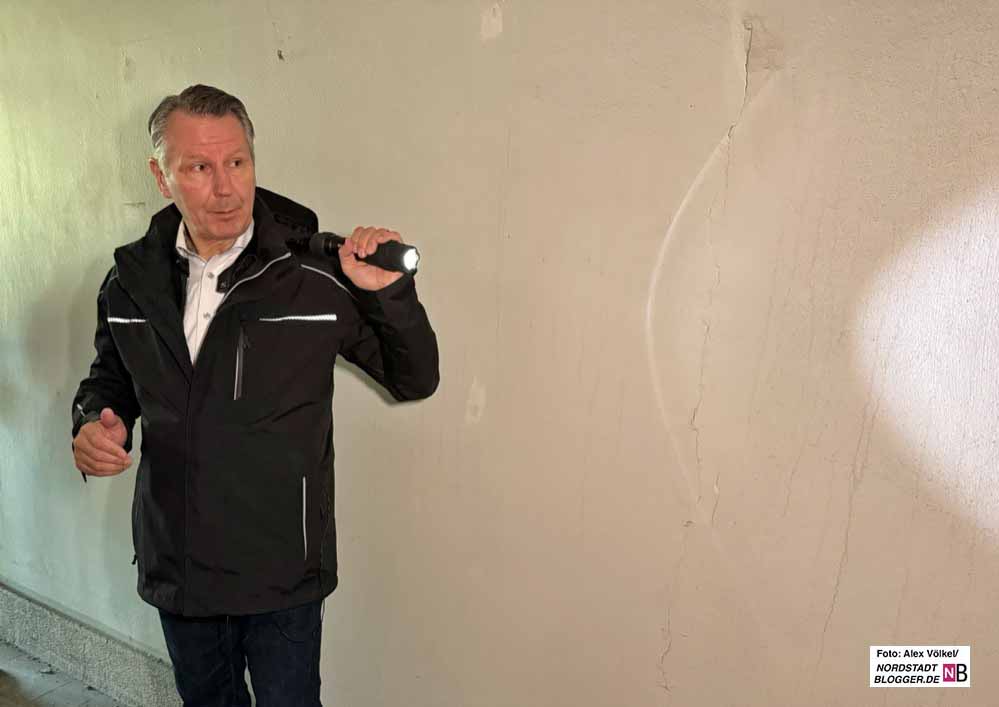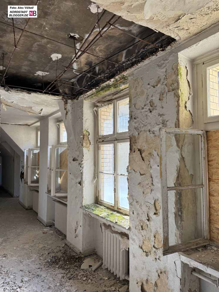 „Die Restauration braucht ihre Zeit und natürlich Geld“, erklärt Horst Nehm, zuständige kaufmännische Leitung für das Sondervermögen Technologiezentrum, mit Blick auf die maroden Zustände im Innern.