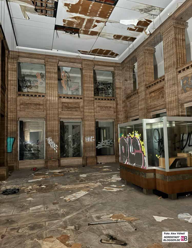 Dass das Gebäude dennoch unter Denkmalschutz steht, macht die Aufgabe nicht einfacher. Teile der Eingangshalle und weitere Bereiche müssen bei einer Restaurierung originalgetreu in ihren historischen Zustand zurückversetzt werden.