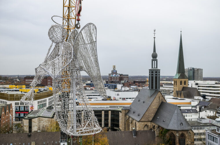 Das Gerüst für die riesigen Weihnachtsbaum steht und nun folgte der entscheidende Moment: Beim Richtfest der Weihnachtsstadt Dortmund wurde die große Engelsfigur auf die Spitze des Weihnachtsbaums gesetzt. Mit diesem Schritt beginnt die finale Aufbauphase, … Zwischen Engelsfigur und Weihnachtsfeeling setzt OB Kalouti Akzente bei Sicherheit und Ordnung weiterlesen
