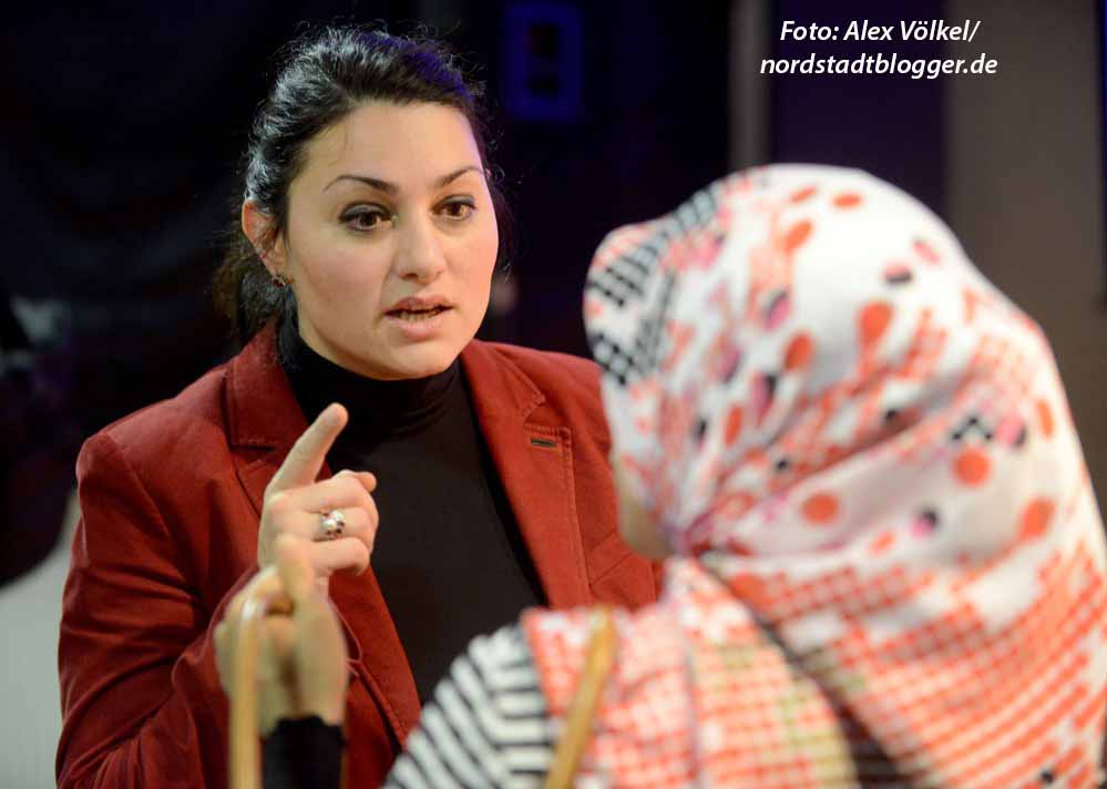 Und dies hat Gründe, die auch mit dem Verhalten der Mehrheitsgesellschaft der muslimischen Minderheit gegenüber zu tun haben: Lamya Kaddor brachte viele Beispiele der Diskriminierung und Islamophobie.