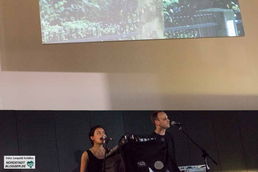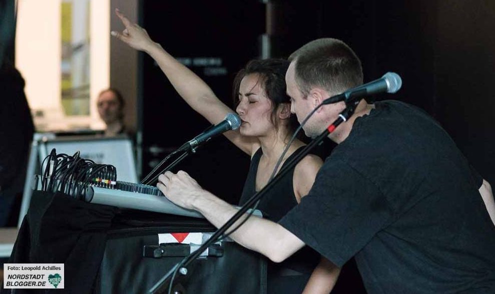 Eines der Highlights war der Auftritt des Trip-Hop Duos AniYokore, der wetterbedingt von der Dachterrasse in das Foyer des Museums verlegt werden musste.