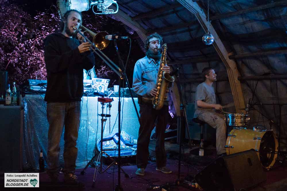 So tanzen Besucherinnen und Besucher zu Live Musik vom „Konfetti Klub Ensemble“ und durchliefen den „Wald der Mythen und Märchen“.