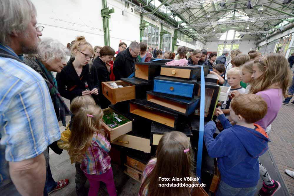 Mit großem Interesse verfolgten die BesucherInnen die Performance der jungen Akteure. Sie stellten ihr Projekt spielerisch vor und haben auch die Schubladen gestaltet. 49 Schubladen sind im Einsatz.